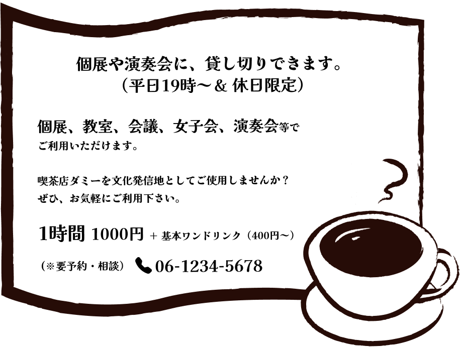 是非、当店の美味しいコーヒーをお楽しみ下さい。
