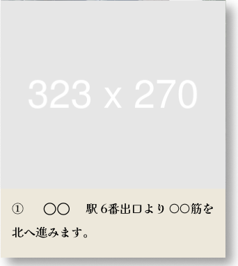 〇〇駅 6番出口より、徒歩2分、▶︎筋を三丁目方向に直進、一つ目の角を左へ曲がった筋にあります。